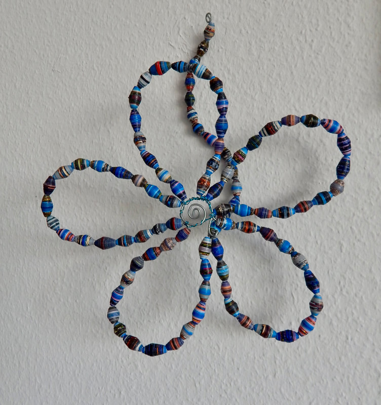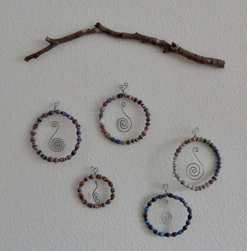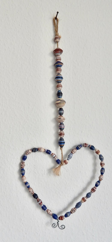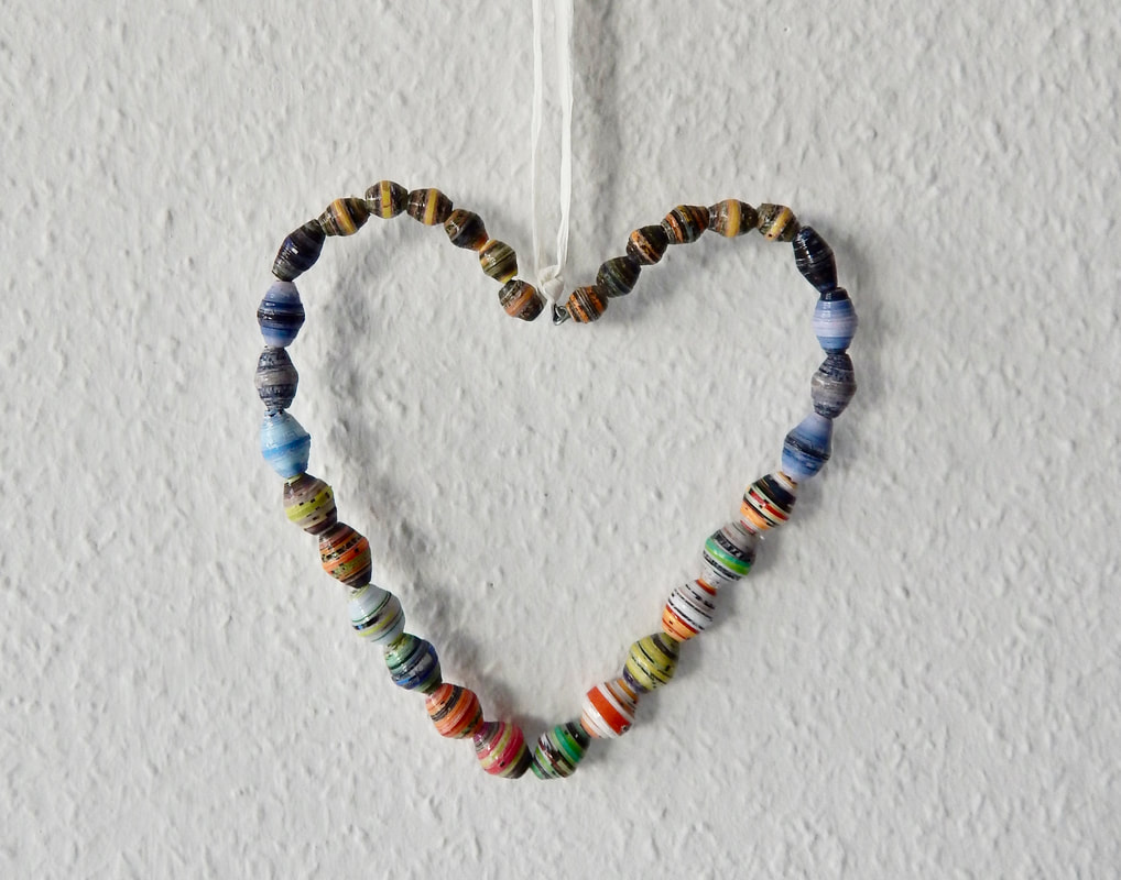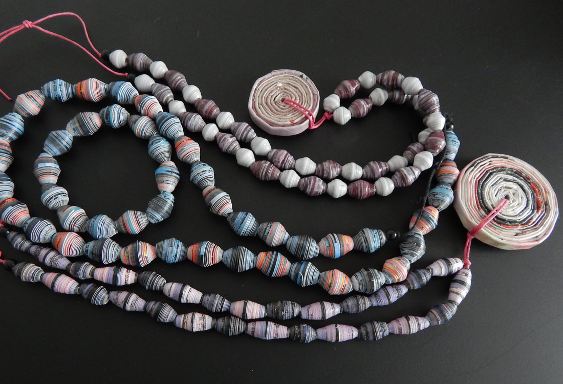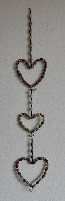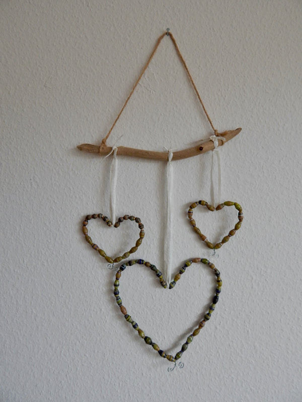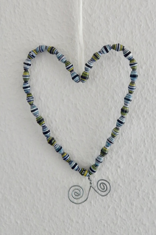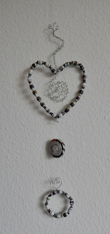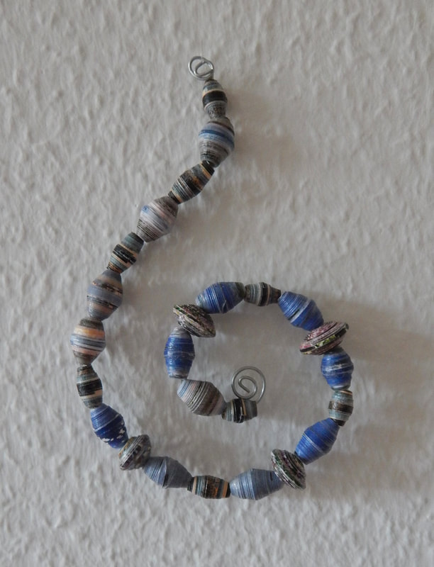 Ich arbeite hauptsächlich mit Altpapier und stelle z. B. aus alten Kalendern Papierperlen her. Aus den Papierperlen entstehen einzigartige Schmuckstücke und Deko-Artikel. Jede Perle ist ein kleines Unikat und mit viel Liebe in meditativer Handarbeit gefertigt.
