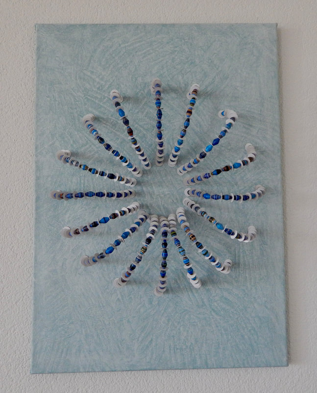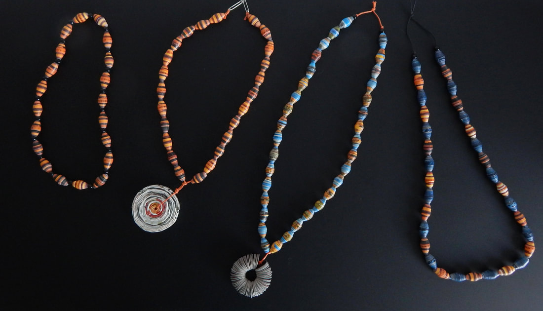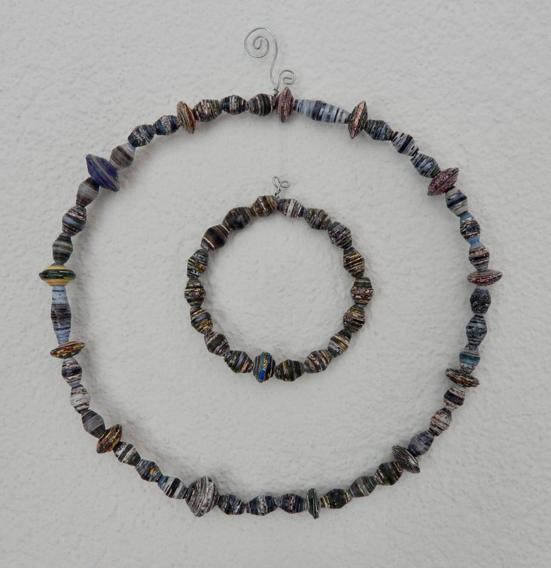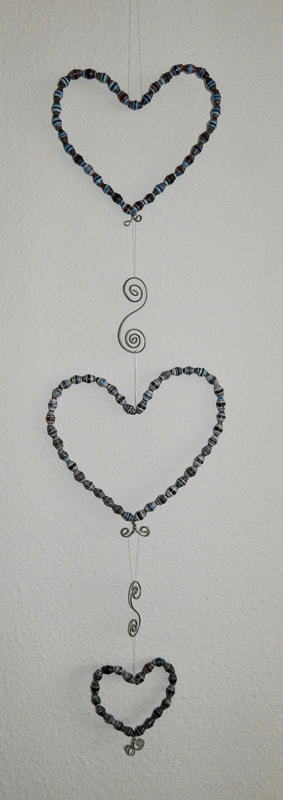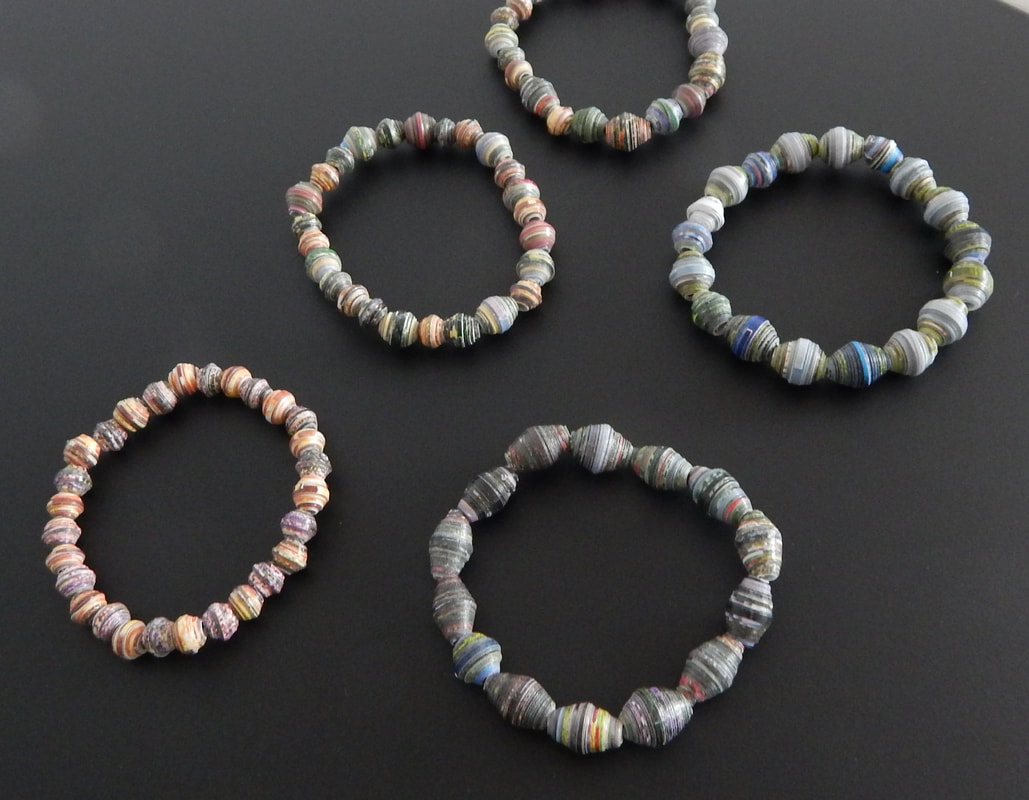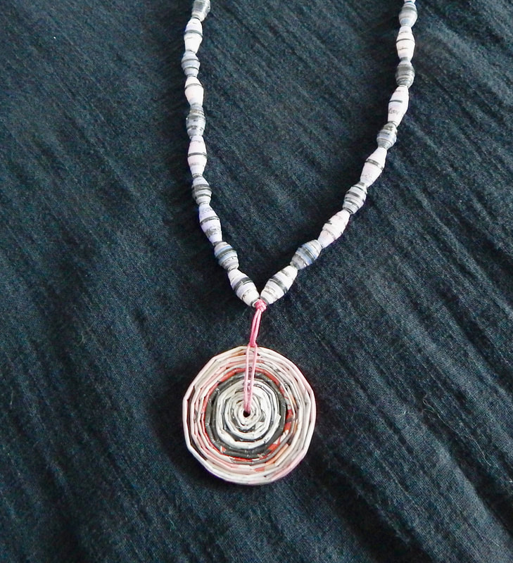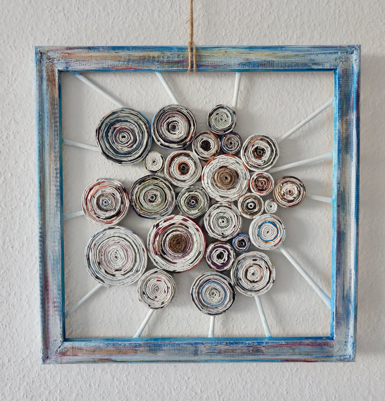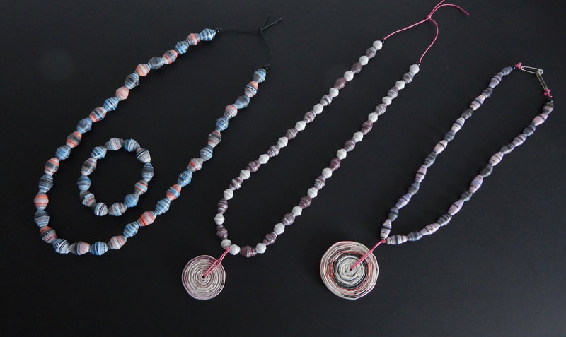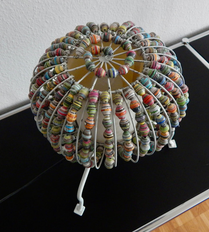 Ich arbeite hauptsächlich mit Altpapier und stelle z. B. aus alten Kalendern Papierperlen her. Aus den Papierperlen entstehen einzigartige Schmuckstücke und Deko-Artikel. Jede Perle ist ein kleines Unikat und mit viel Liebe in meditativer Handarbeit gefertigt.
