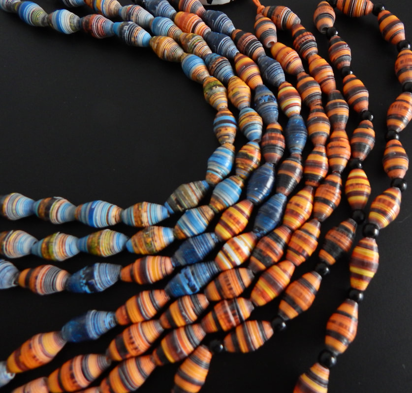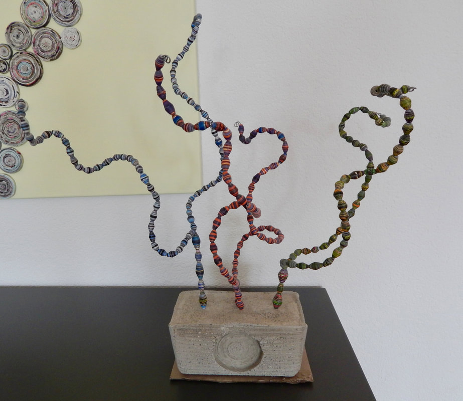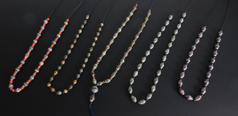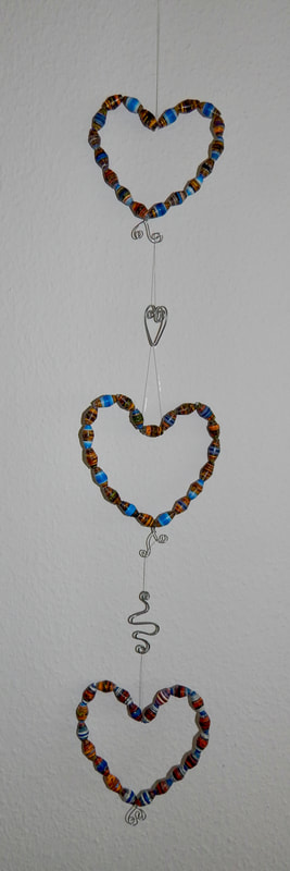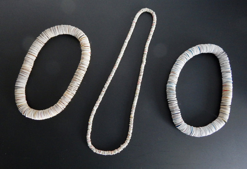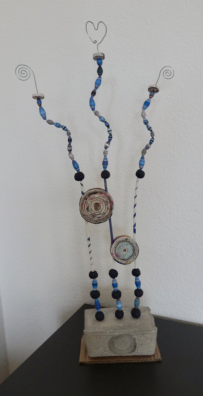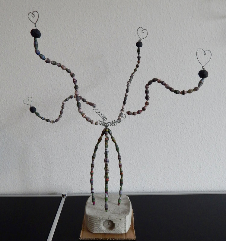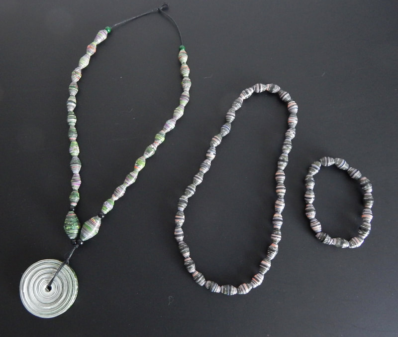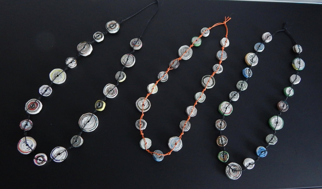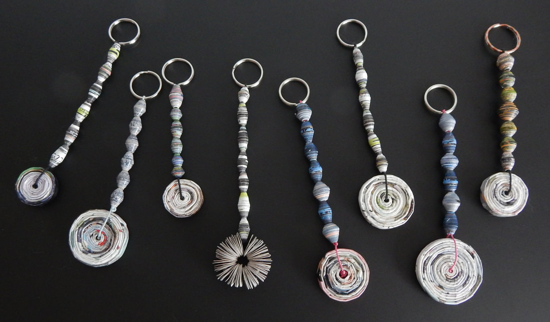 Ich arbeite hauptsächlich mit Altpapier und stelle z. B. aus alten Kalendern Papierperlen her. Aus den Papierperlen entstehen einzigartige Schmuckstücke und Deko-Artikel. Jede Perle ist ein kleines Unikat und mit viel Liebe in meditativer Handarbeit gefertigt.